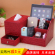 包邮时尚皮制带抽屉式桌面收纳盒柜木质 化妆品整理盒 多功能创意