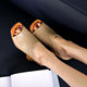 欧洲站真皮粗跟凉鞋女高跟凉鞋女夏细带罗马一字扣带露趾中跟凉鞋