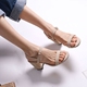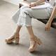 磨砂真皮高跟凉鞋女夏季粗跟凉鞋一字扣细带罗马防水台裸色罗马鞋