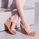 磨砂真皮坡跟凉鞋女夏超高跟防水台厚底鱼嘴凉鞋女罗马裸色凉鞋子
