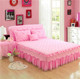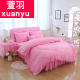 萱羽韩版公主蕾丝床裙式床罩式四件套纯色花边球球被套床套多件套