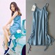 欧美街头风修身套头侧开叉绑带V领弹力吊带短裙浅蓝色牛仔连衣裙