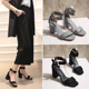 2017年夏新款磨砂真皮女凉鞋韩版粗跟女式凉拖鞋高跟一字扣女鞋子