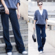 2017春装新款女装白百何明星同款v领套头毛衣喇叭长裤两件套套装