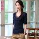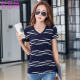 杉思情2017夏装新款修身简约v领压花条纹大码女士短袖棉T恤衫百搭