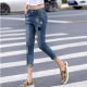杉思情破洞牛仔裤女宽松阔腿裤韩版春季新款小脚裤中腰翻边九分裤