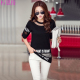 杉思情2017春夏新款韩版大码宽松女装圆领7分袖雪纺衫上衣打底衫