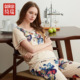 绮瑞夏季睡衣女夏纯棉短袖七分裤印花休闲春夏女士全棉家居服套装
