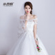 2017新款婚纱礼服夏季新娘一字肩齐地简约韩式显瘦公主婚礼蓬蓬裙