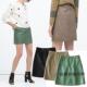 ZA#专柜正品皮裙2358/501原单女款PU皮裙仿羊皮裙A字裙高腰半身裙