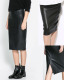 ZAR专柜正品女款高腰显瘦半身裙仿羊皮裙中长款PU皮裙过膝包臀裙