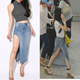 李小璐同款欧美性感侧开叉裙显瘦修身包臀牛仔裙半身裙过膝长裙子