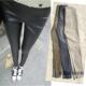 秋冬必入欧美显瘦拼接剪裁高B格哑光仿小羊皮高腰拉链小脚裤皮裤