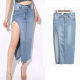 新款李小璐女款性感牛仔裙高腰侧开叉修身包臀长裙半身裙铅笔裙