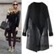欧洲站女ZA#秋冬季pu皮衣羊羔毛一体修身中长款皮外套大翻领大衣