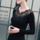 春秋款 黑色蕾丝V领长袖t恤 纯色 莫代尔修身打底衫女薄款