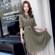 2017夏装新款女装短袖v领纯色修身松紧腰百褶A字雪纺连衣裙夏季