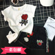 女童休闲短袖 2017夏款韩版女宝宝时尚不规则T恤儿童刺绣玫瑰上衣