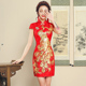 俏美尔新款2017旗袍连衣裙红色时尚改良中式旗袍短款敬酒服中式装