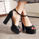 欧美时尚百搭露趾一字扣带超高跟粗跟凉鞋女夏季性感防水台罗马鞋