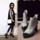 英伦风秋冬超高跟防水台粗跟短靴女侧拉链圆头皮带扣马丁靴潮女靴