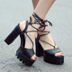 欧美粗跟防水台脚环绑带气质罗马鞋 磨砂魔术贴超高跟防滑单鞋女
