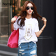 大码女装胖mm夏装短袖t恤女宽松韩版印花字母百搭显瘦半袖上衣