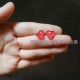 红色爱心手工玻璃时光宝石甜美日韩饰品耳环防过敏塑料针耳钉1CM