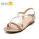 达芙妮旗下SHOEBOX/鞋柜夏水钻平底绑带凉鞋 防滑平跟女鞋清仓
