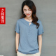 短袖T恤女2017夏装新款清新文艺风时尚短袖圆领棉麻T恤衫小衫潮