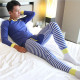华杰龙男士内衣套装 印第安时尚紧身条纹V领秋裤秋裤套装