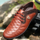 中老年男鞋爸爸鞋子防臭系带圆头透气中年男士商务休闲皮鞋男真皮