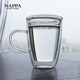 NAPPA玻璃马克杯带盖 耐高温玻璃水杯 双层玻璃杯 马克杯耐热防爆