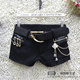 个性挂链黑色短裤韩版百搭修身显瘦拼皮靴裤女 潮 低腰超短裤子女