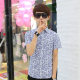 夏季薄款格子短袖衬衫男士韩版修身青少年休闲半袖印花衬衣潮男装