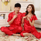 2套价 春秋夏季情侣家居服大红情侣睡衣 结婚丝绸睡衣男女士套装