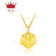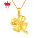 珍艾幸运四叶草黄金吊坠女士足金3D硬金吊坠项坠送镀金银链