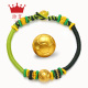 珍艾十二生肖黄金转运珠手链足金3D硬金本命年手链皮绳编织绳手串