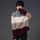 秋冬韩版套头毛衣中长款条纹针织羊毛衫蝙蝠长袖高领宽松毛衣女厚