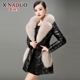 鑫纳多2016冬装新款女式真皮皮衣中长款海宁狐狸毛领皮羽绒服外套