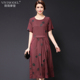 母亲节2017夏装新款优雅短袖连衣裙中长款显瘦大码印花雪纺连衣裙
