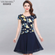 雪纺连衣裙2017夏季新款中年妈妈装修身显瘦印花假两件短袖连衣裙