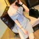 2017夏季 名媛气质一字肩抹胸开叉连衣裙高腰am 露肩礼服裙子alu