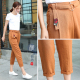 雨艾浓女裤2017夏麻料八分小脚哈伦裤9528新款宽松卷边刺绣休闲裤