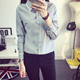 春装女上衣长袖学生衬衣显瘦韩版时尚拼接POLO领休闲秋冬打底衬衫