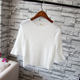 夏装白色雪纺衫五分袖修身薄款喇叭袖纯色雪纺T恤女短款打底上衣