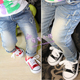 2015新韩版春装男女童小童宝宝背带裤星星牛仔裤百搭欧美磨边时尚