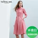 未风收腰衬衫裙 七分袖印花连衣裙女2017春装 中长款碎花女装新款