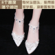 春夏水晶钻珍珠鞋结婚礼服新娘白色细跟高跟尖头演出性感女单鞋子