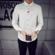 滟鹿世家新款男士长袖衬衫韩版修身大码休闲纯色白衬衣潮日系男装